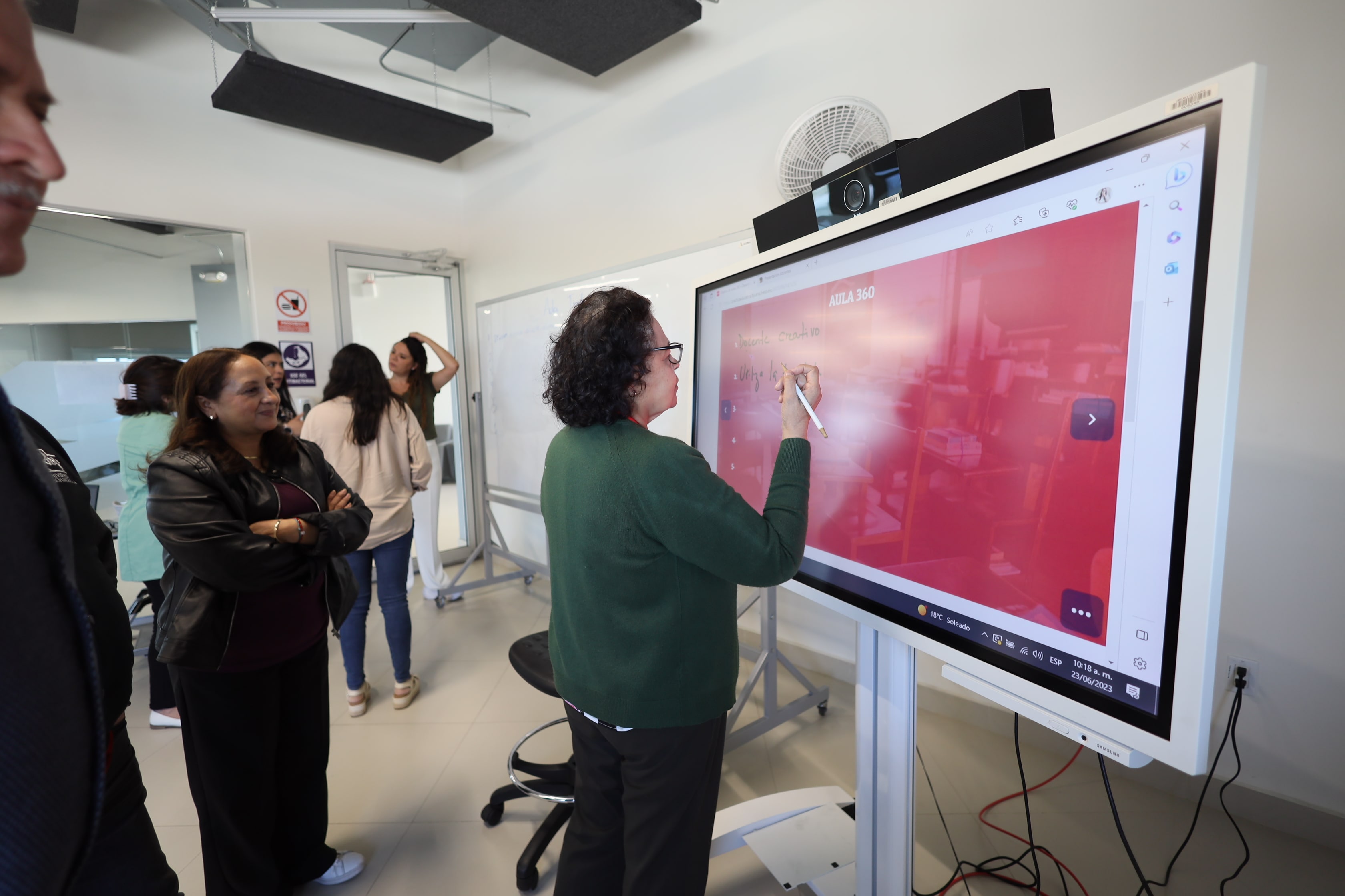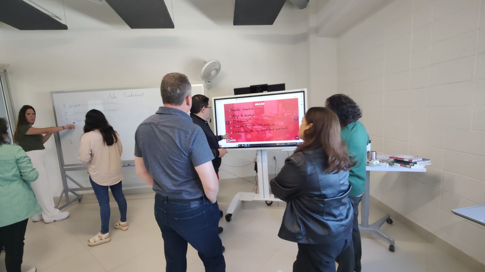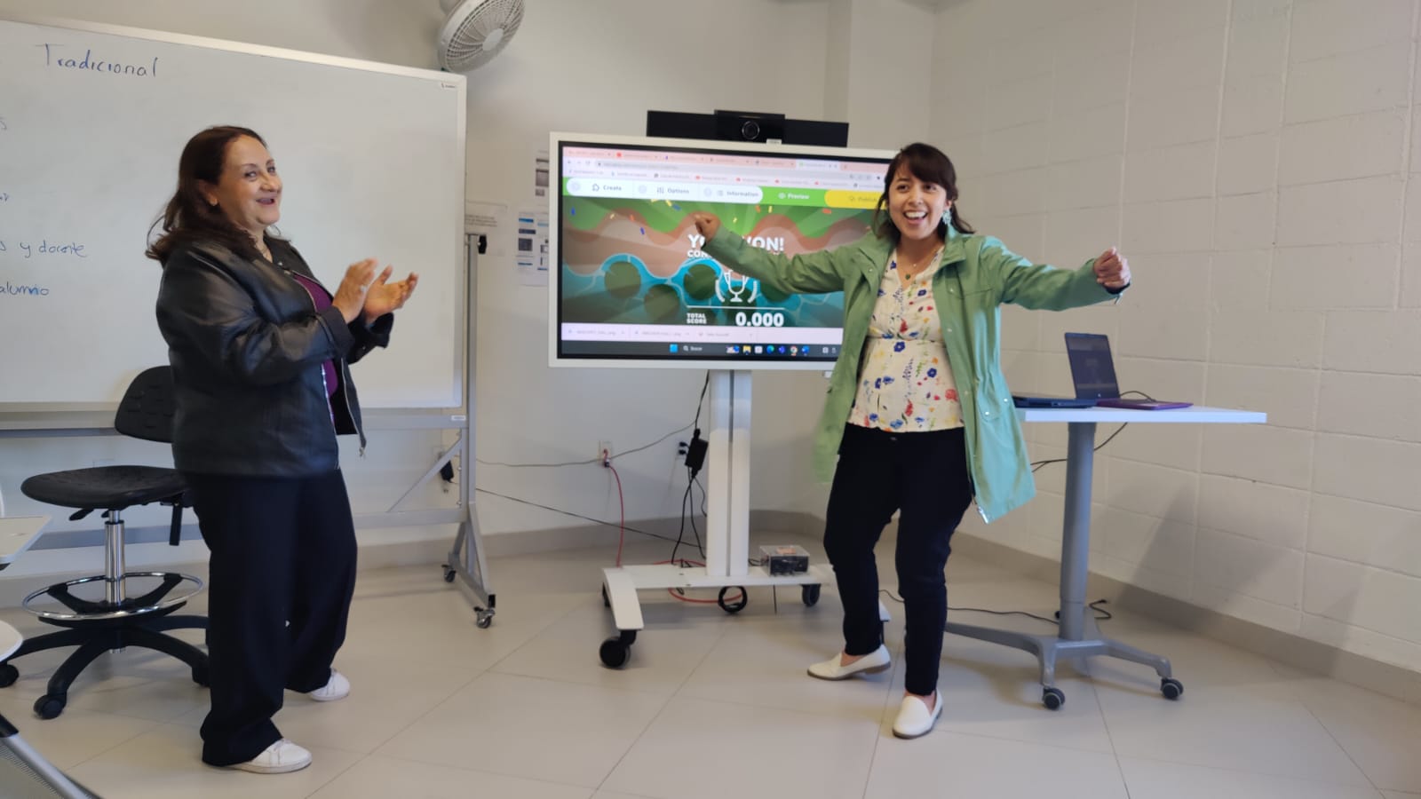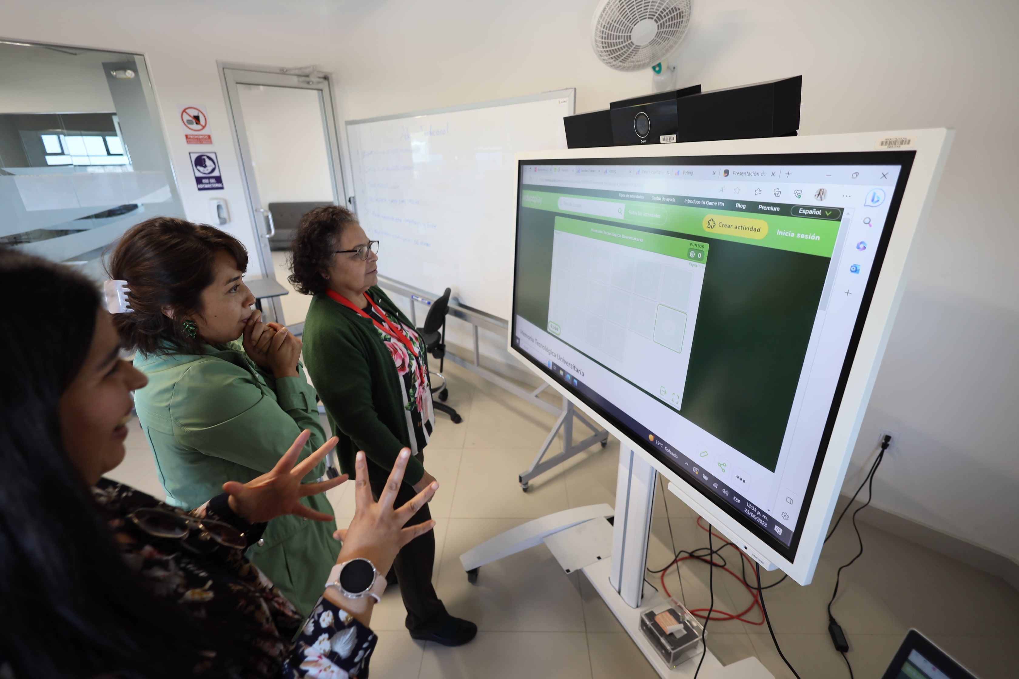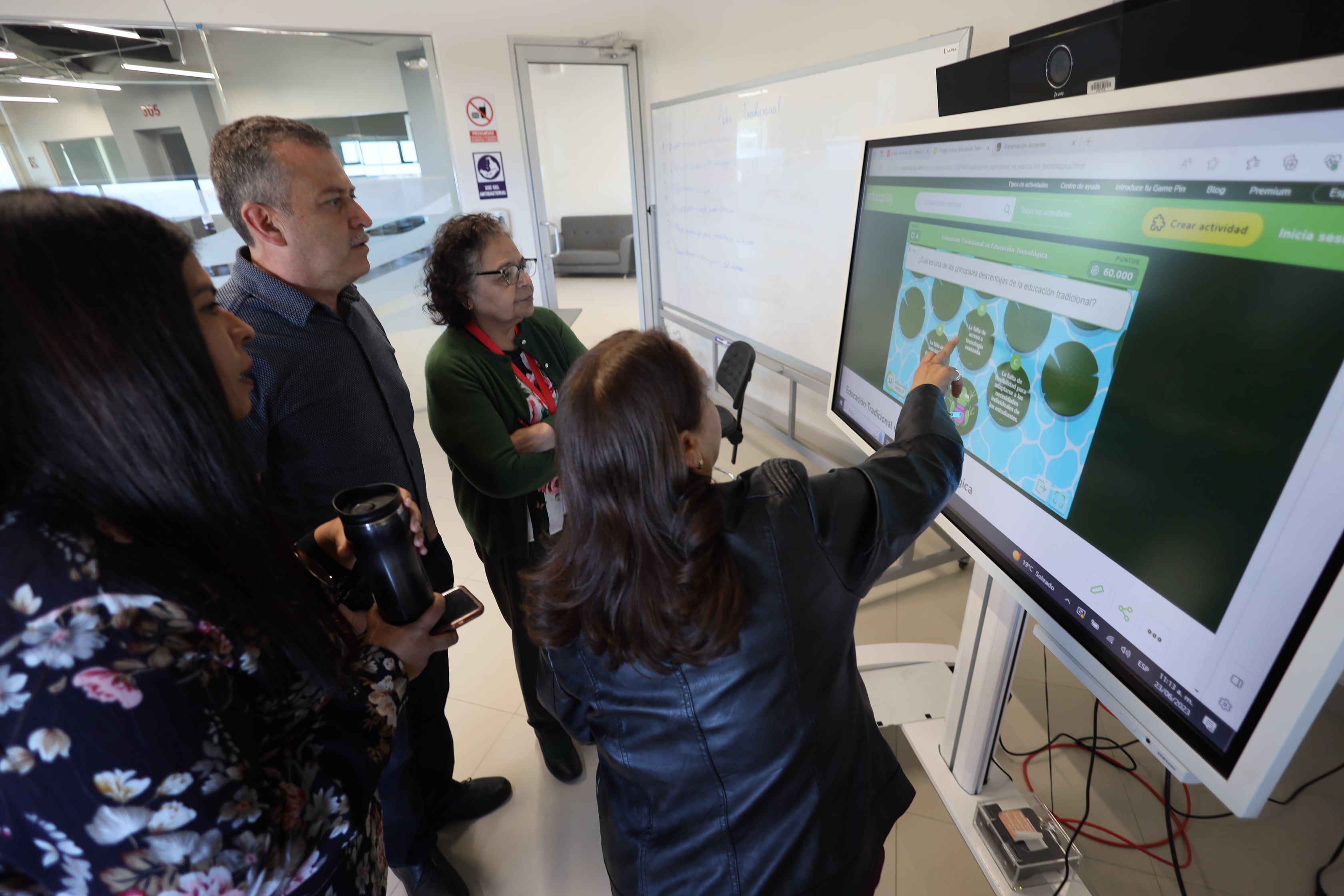 Interacción con pantalla digital y pintarrón conociendo que ambos recursos didácticos pueden ser factibles en el desarrollo de sus actividades.